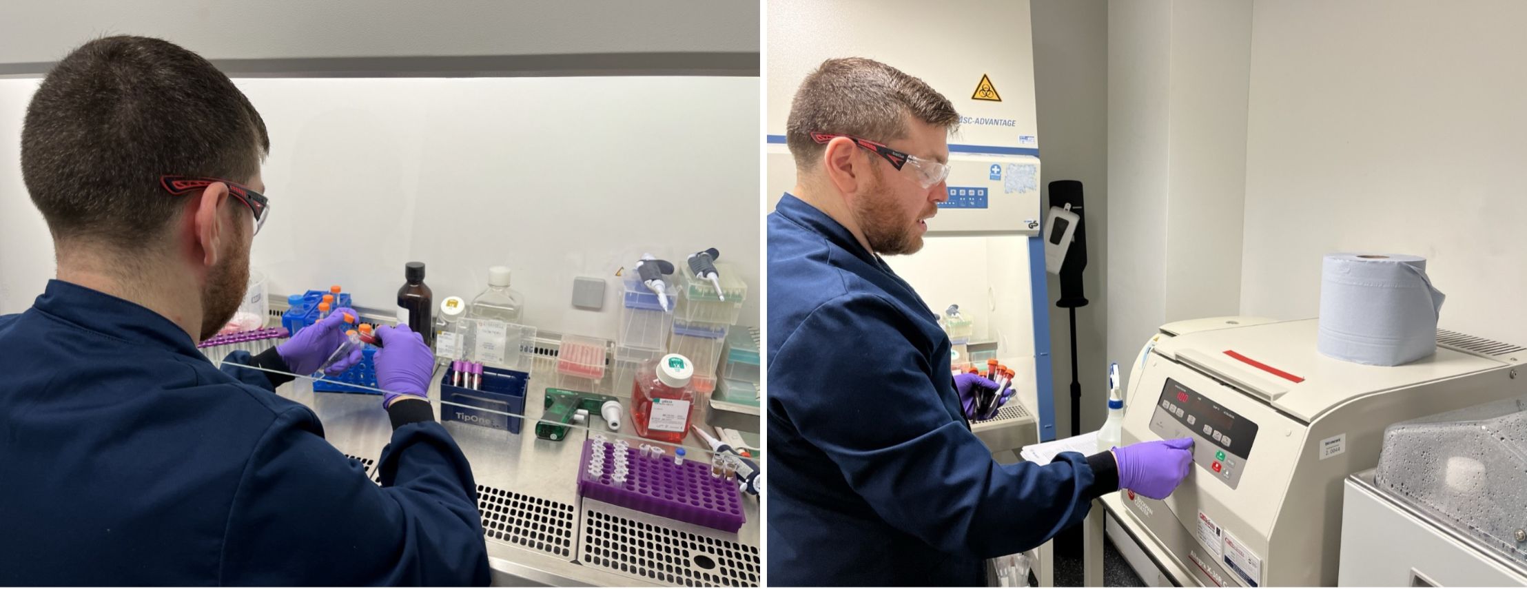 Whole blood is collected from the anonymous donor by one of our trained Phlebotomists at BioAscent into tubes specific for the application required. It is then delivered to me in the lab.