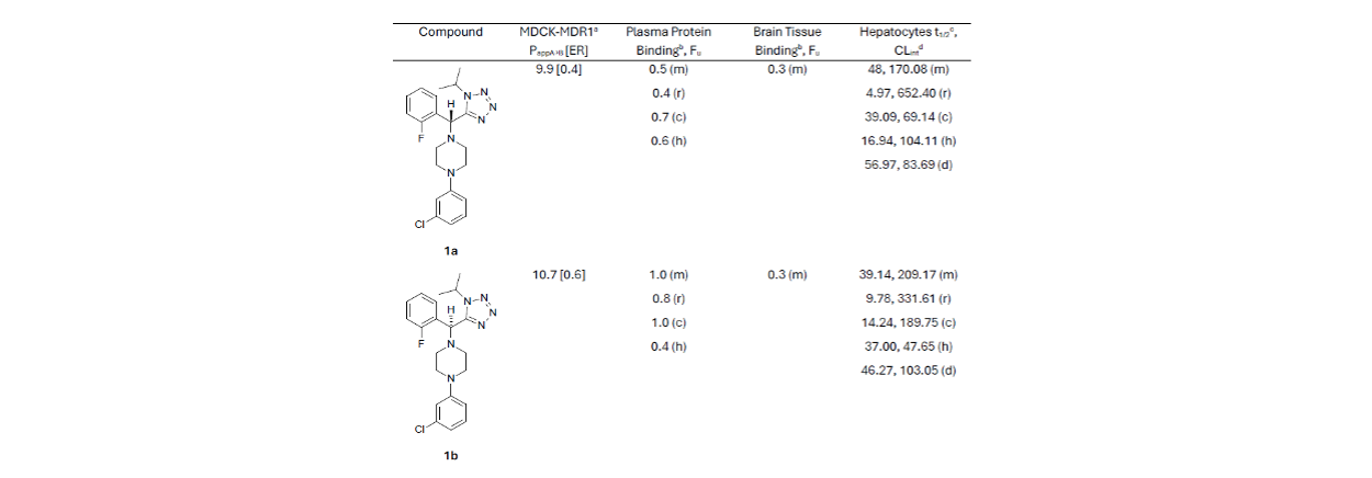 Table 1. In vitro ADME data for compounds 1a and 1b. a (*10-6 cm/s); b %; m: mouse, r: rat, d: dog; c: cynomolgus monkey, h: human; c minutes; d μL/min/kg.