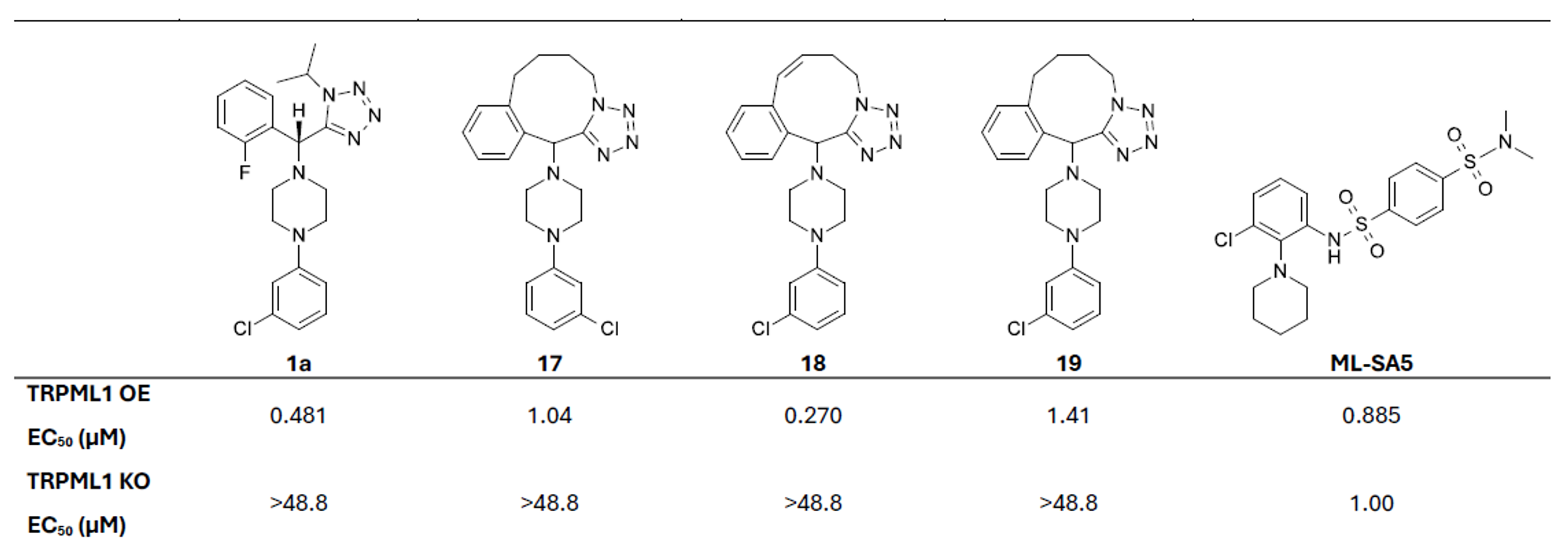 Table 2. EC50 data for synthesised macrocycles in TRPML1 OE and KO cell lines.
