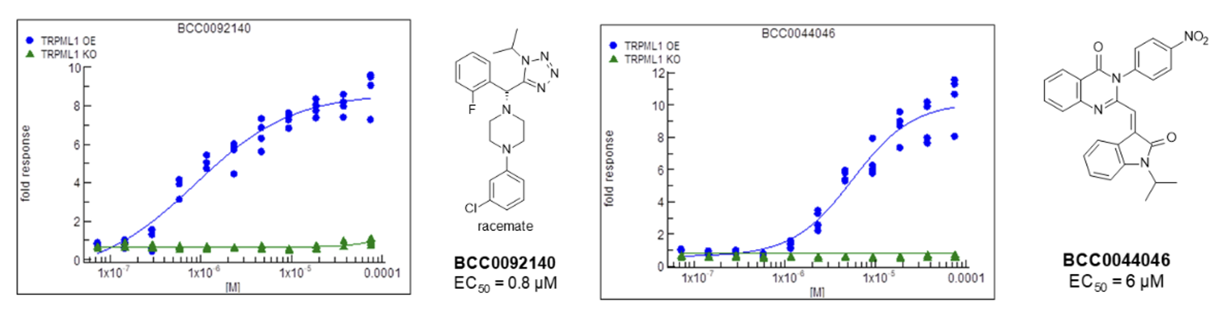 109 compounds were tested in 7-point and then 11-point dose–response curves in both TRPML1 OE and KO cells.